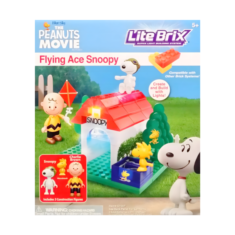 Build a 3D construction Flying Ace Snoopy using Lite Brix, compatible with other brick systems.